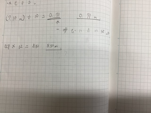 学習したことを活かして、歩幅の平均を求めることで、歩幅を使っておおよその長さを測ることができると知りました。