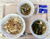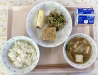 今日は、じゃがいもと一緒につぶし、炒めた具材と合わせてコロッケにしました。具材には、ぶた肉や玉ねぎ、にんじんなどが入っています。じゃがいもだけのコロッケと違い、里芋のねっとりとした食感も楽しめるコロッケに仕上がりました。また、肉や野菜のうま味も加わり、子供たちも美味しそうに頬張っていました。