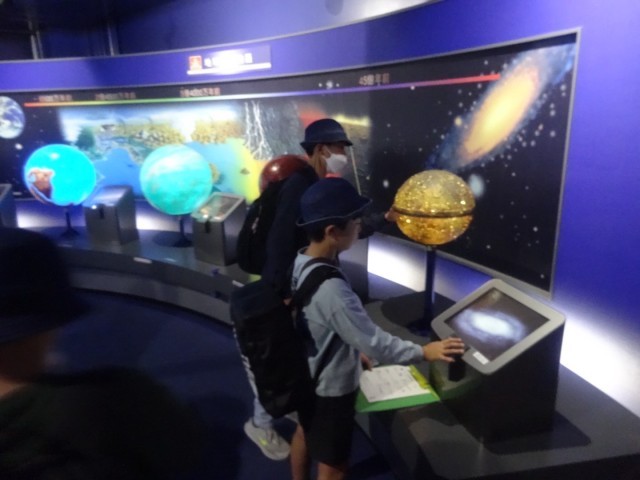 JAXA地球観測センターでは、展示を見ながらクイズラリーに挑戦しました。いろいろな仕掛けのある展示を体験しながら問題に取り組んでおり、「もっと見たかった!」という声も聞かれました。