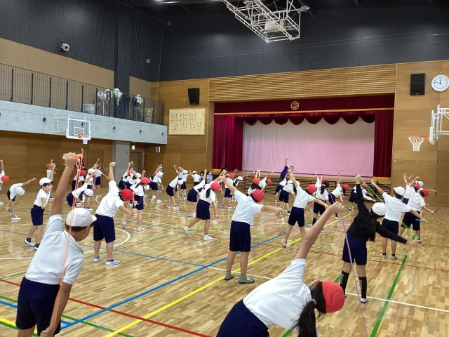 今年度もふっくんになわとびの特別授業をしていただきました。「腕はなるべく体の近くの同じ場所で回す!」というポイントを教えていただき、楽しんで練習に取り組む様子が見られました。二重とびやはやぶさのコツも教えていただいた3年生、なわとびマスターになるために体育の時間でも練習に取り組みます。
