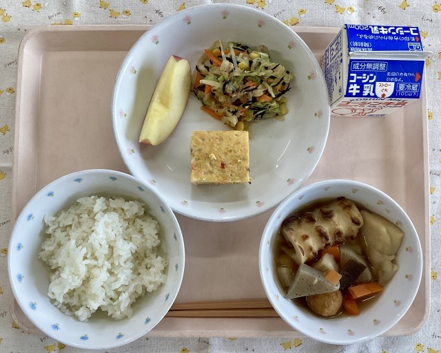 子供たちにもとても好評で、「クラスの食缶が空になったよ!」「2杯もおかわりしたよ!」と嬉しい言葉をたくさん伝えてくれました。今日は、気温が低かったのもあり、より美味しく食べられたようでした。