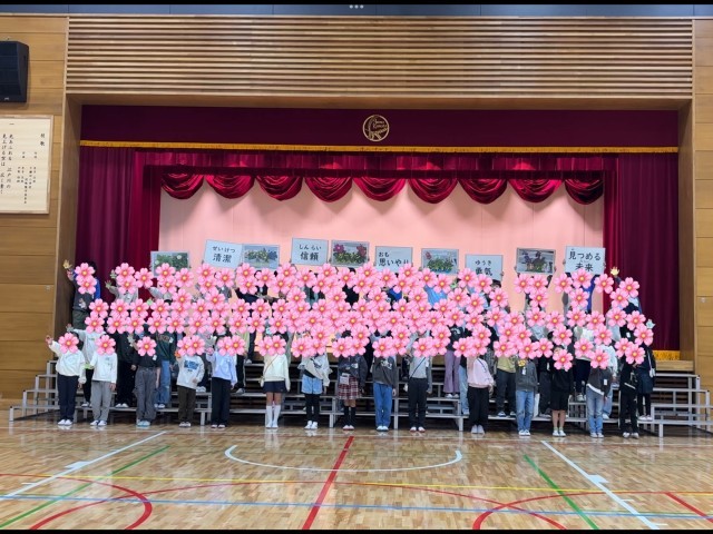 落成式記念集会では、3年生は「お花」にちなんだアトラクションを披露しました。当日は2組の学級閉鎖や欠席児童も多い中での開催となり、お休みの子の分を誰かが代わりに言うなど、みんなの思いを心にこめて、学年全体が協力した姿を見せてくれました。とても素敵なアトラクション、保護者会でも披露する予定です。次は、全員がそろいますように!