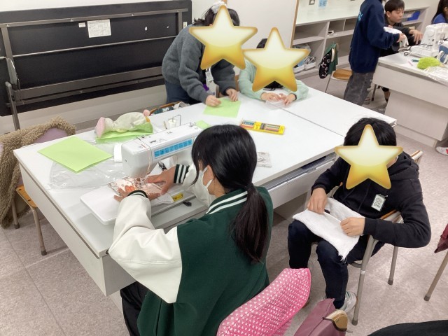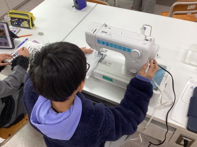 6年生は家庭科の学習で、ぞうきん作りに取り組んでいます。