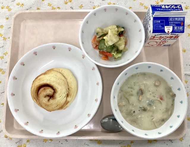 シナモンロールは、北欧や中欧で広く親しまれたパンで、現地のパンにはシナモン以外にもカルダモンなどスパイスを生地に練りこまれています。今日は、シナモンだけを使って作りました。子供たちでも食べやすいように甘めの味付けにしました。