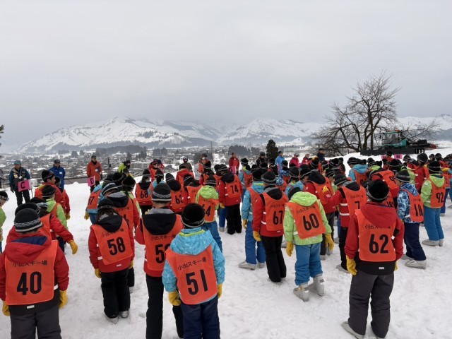 小出スキー場に到着して、お世話になるインストラクターの方々と開校式を行いました。