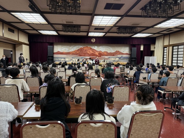 【5年生】ウインタースクール(29) 閉校式 公開日 2026/02/17 更新日 2026/02/17 5年生 部屋をすみずみまできれいにして、宿舎を出発する前に閉校式です。ウインタースクールでお世話になった宿舎の方、観光協会の方からお話を伺い、感謝の気持ちを伝えました。本当にありがとうございました!!