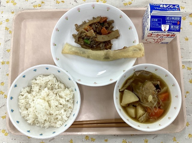 今日は歯応えのある食材が多かったので、子供たちもよくかんで給食を食べていました。よくかむことは、歯を丈夫にしたり、消化を助け体の中で栄養を吸収しやすくしたりといいことづくめです。食事の時は、一口30回を目指してよくかんで食べましょう!