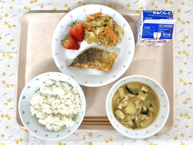 給食では、今後も旬の野菜や果物を献立に取り入れていきますので、楽しみにしていてください。