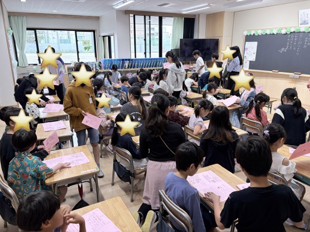 1年生に目線を合わせて話をしている姿や、優しく微笑みかけている姿など、最高学年という自覚をもって接している姿が印象的でした。
