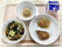 くずきり汁に使われているくずきりは、葛粉を溶かして固めて細く切った麺状の食べ物です。見た目はところてんに似ていますが、使われている材料が違うため食感も全く異なります。寒天から作られるところてんよりも少し硬めで歯応えがあり、鍋料理にも使われることがあります。給食では、すまし汁にくずきりを入れることが多いです。