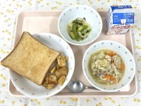今日は、きな粉にバター、マーガリン、ハチミツを混ぜてペースト状にし、パンに塗りました。甘くて香ばしく焼き上がったトーストは、子供たちからも好評でした。いつもより過ごしやすい気候だったので、子供たちの食欲も少し戻ってきたのか、サラダやチャウダーもたくさん食べてくれました。