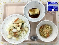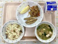 レンズ豆は、メガネなどに使われるレンズの形に似ていることから、この名前が付いたと言われています。歴史は古く、石器時代から食べられていたという記述もあります。大きさはとても小さいですが、豆特有の風味と香りが豊かで、食べるとホクホクしてじゃが芋のような食感です。給食でも、今日のようにスープに入れたり、カレーのルウに入れたりしています。体の調子をととのえてくれる、ビタミンB群が豊富です。