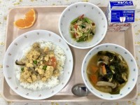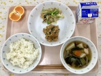 「クラムチャウダー」は、英語で「二枚貝」を意味する「クラム」と、「具沢山のスープ」を意味する「チャウダー」を合わせてできた名前です。給食では、あさりを使いました。貝類の旨味がスープに溶け出し、より美味しさを感じました。最後に米粉でとろみをつけ、寒い季節にぴったりの一品でした。