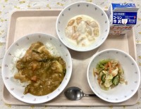 今日のメニュー冬野菜カレーライス牛乳いろどりサラダフルーツヨーグルト 今年最初の...