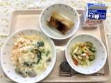 今日のメニュー ・ごはん ・牛乳 ・サバの文化干し ・キャベツと小松菜のごま和...