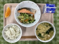 今日の献立ご飯牛乳鮭の塩焼き小松菜のあえ物かき玉汁清見オレンジ今日は、6年2組9...