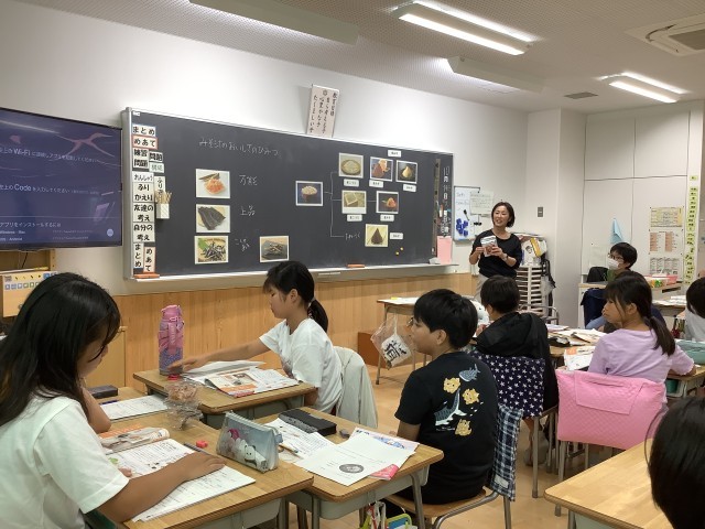 6年生の家庭科では「まかせてね 今日の食事」の学習をしています。家庭科教諭がT1、栄養士がT2となり、連携して授業を行いました。栄養士からは学校給食の献立を例に挙げ、主食、主菜、副菜、汁物の一汁二菜にするとバランスの良い食事になることを学びました。その後、子どもたちは自分だったらどのような献立にするかを考えました。