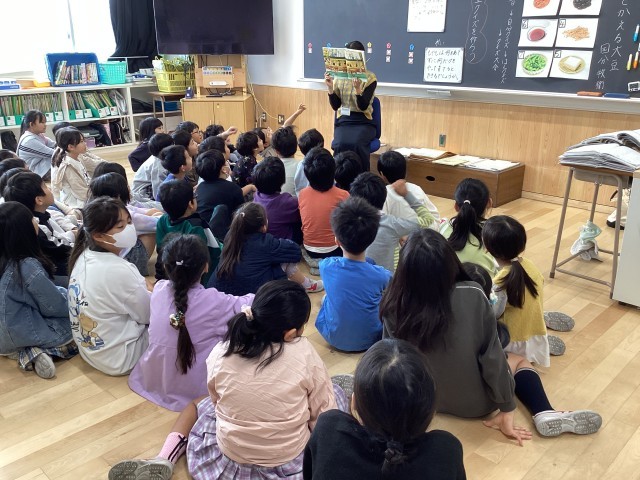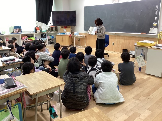 図書ボランティアの方々による読み聞かせが、3、5、6年生で行われました。