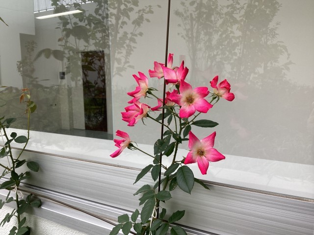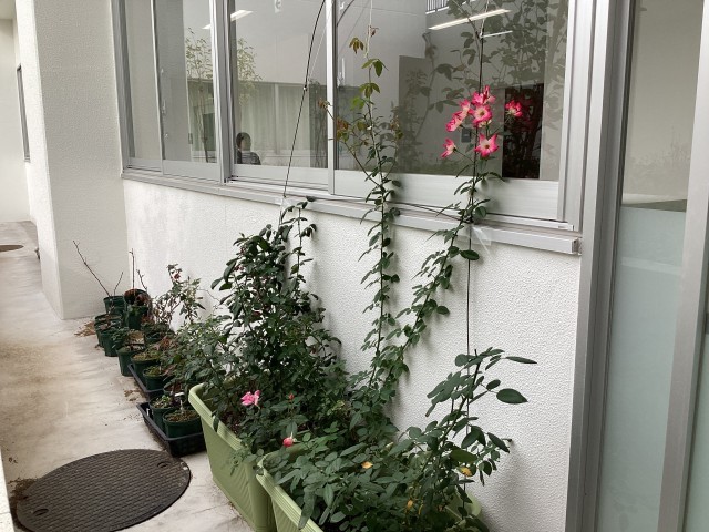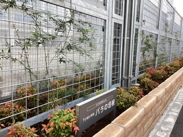 下小岩小学校と下小岩第二小学校が統合して新しい下小岩小学校になって2年、下小岩第二小学校のシンボルだったバラもその思い出が残されています。学校周囲のフェンスにはバラが植えられています。また、下小岩第二小学校のフェンスを飾っていたバラも大切に残され、現在は花を咲かせています。