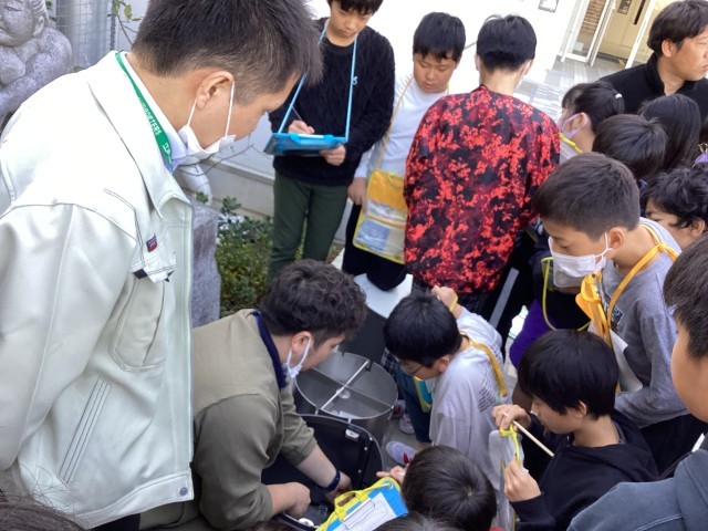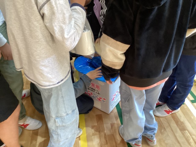 5年生の総合的な学習の時間には、江戸川区の防災危機管理課の方をお招きし「シン・ボウサイ」の学習をしました。まず区の防災対策についてDVDを見ました。その後グループに分かれて、備蓄倉庫を見学、マンホールトイレの組み立て、かまどベンチの見学をしました。万が一の場合に備えている学校内の設備について、一部ではありますが知ることができました。これから、自分には何ができるかを考えていきます。