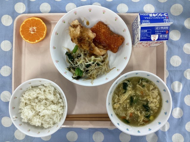 今日は、中華の人気のおかずを選んで食べました。低学年と中学年は油淋鶏が断然人気でしたが、高学年はどちらも同じくらい選ばれていました。
