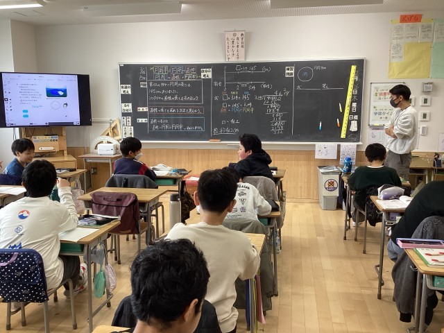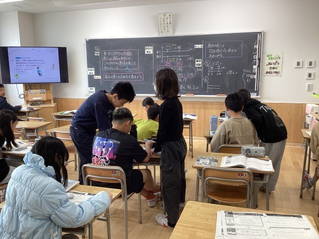 5年生の算数「正多角形と円」の学習をしています。直径と円周の関係を考えました。円周がわかっているタイヤの直径の長さを求めました。