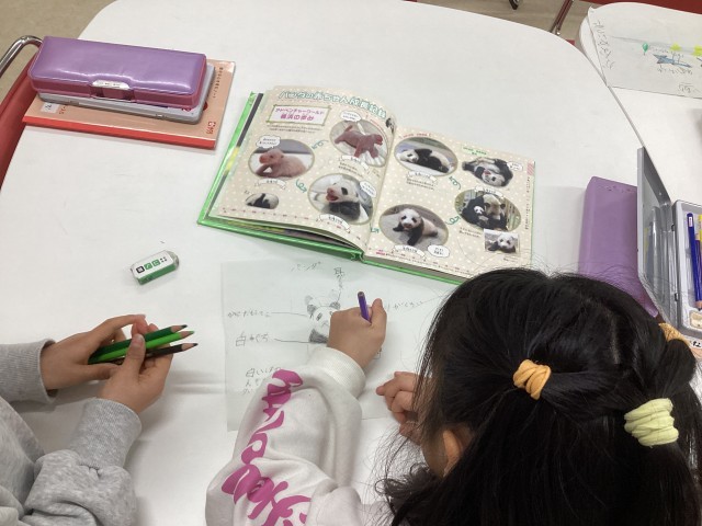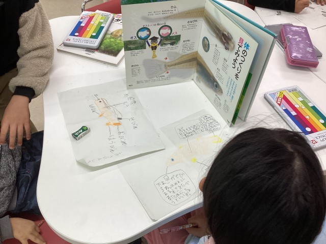 1年生は国語・読書科の学習で「生きものしらべ」のまとめを行っています。それぞれが決めた生き物について図鑑などで調べ、その特徴を書き出しました。これを元に生き物について紹介する文にまとめます。