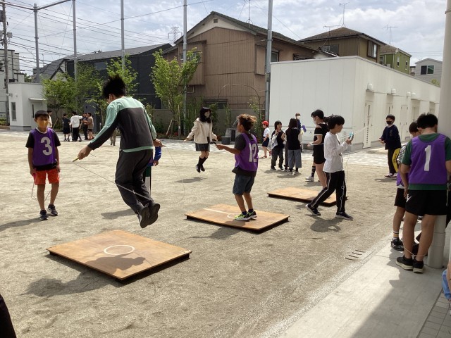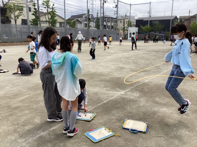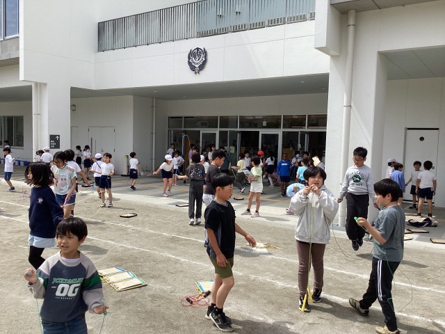 江戸川っ子なわ跳びチャレンジウィークが始まりました。中休みには多くの子どもたちが校庭に出ています。がんばりカードを見ながらチャレンジしている子、友達と一緒に取り組んでいる子、ジャンピングボードを使って二重跳びや三重跳びに挑戦している子などいろいろな姿が見られました。