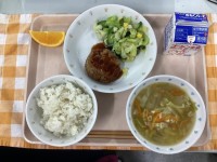豆まめみそ汁は、茹でた大豆と豆乳をミキサーにかけたものが入り、クリーミーな味わいです。