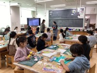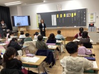 5年生の家庭科「ものを生かして住みやすく」の学習で、ミシンの操作の学習に取り組んでいます。電源の入れ方、糸の掛け方、ボビンに糸を巻く方法など、ひとつひとつ確認しながら進めています。