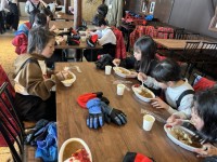 オリエンテーリングのポイントには、輪になって誰かとつないだ手をくぐったりまたいだりして一重の円にする「人間知恵の輪」、代表者がお題の絵を描いて班のほかの人が何を描いたか当てるポイント、水が入ったペットボトルを1回転させてから立たせるペットボトルフリップのポイントでは、1分間に2回立たせることができたらクリアなど、いろいろなポイントがありました。