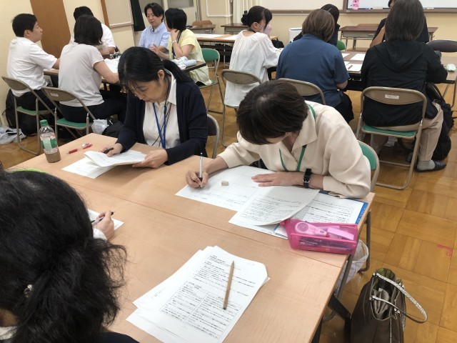 9月30日(火)の14:30より、本校で、特別支援推進研修会が行われました。今回は近隣の小・中学校で特別支援教育に関わっている先生方対象の会でした。研修内容は、ある児童・生徒の学習指導についての事例をもとに、参加された先生方で学習指導や児童・生徒に対するかかわり方などを研修し、交流し、さらに深めていくものでした。当日は大勢の先生方の参加で、教室がいっぱいになり、大盛況で研修が終了しました。特別支援教室は個別での指導が主となるので、児童・生徒とのかかわり方が大きく影響します。それだけに様々な工夫が必要となってきます。このことを踏まえての研修会だったので、持ち帰ることはたくさんあったと感じます。