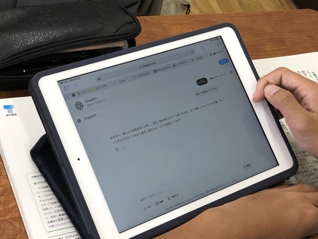 技術科の授業の2回目は、情報の学習の様子を紹介します。生成AI(チャットGDP)の活用方法を学習です。「生成AI」という言葉は毎日必ず報道等でも触れる現代のキーワードです。子どもらが成人する時代には「基本ツール」となっていくでしょう。そのための基礎(入門)として取り扱いには遅いかもしれませんが… 。
