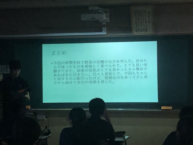 2年生は先月の総合的な学習の時間に7月に行った「林間学校」のまとめの発表会を行いました。まず、クラスで全員の発表をします。全員で審査をして、クラス代表を選出します。そして学年発表会でクラス代表が発表する。という流れです。一人ひとりの発表時間は短いものでしたが、体験したことや現地で考えたことを織り交ぜていて、各自が素晴らしいプレゼントなりました。