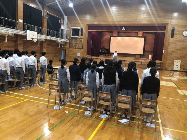 10月16日(木)4時間目~6時間目で各学年の「(けやき祭の)学年リハーサル」が行われました。これは、合唱コンクールの時の動線を確認するものでした。当日、円滑に進行するための準備はとても大切なことだと思います。