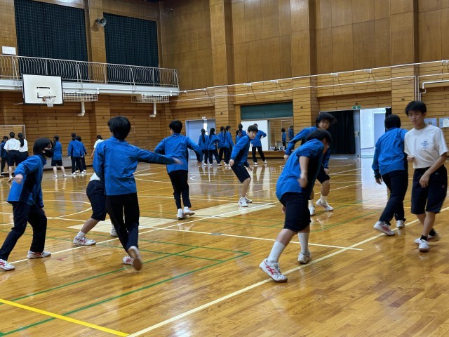 10月10日(金)に3年生の「保健体育ダンス発表会」の本番となりました。今回はその発表会に向けての最後の仕上げの取り組みを紹介します。各チーム隊形や振り付けの最終確認をしています。チームワークで困難に立ち向かって、達成感を味わって欲しいと思います。
