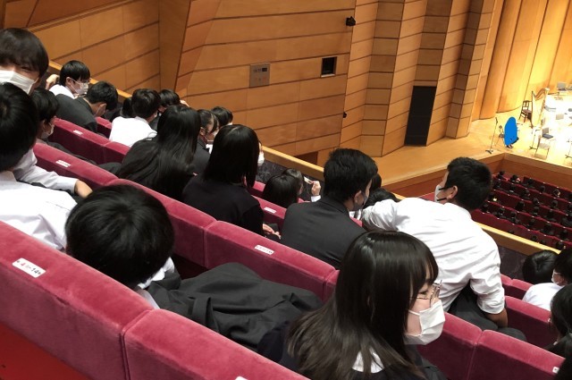 11月7日(金)に2学年は総合文化センターで行われた音楽鑑賞教室に行きました。「都響」(プロ)の生演奏を聴きました。生演奏の迫力を味わい、さらに演奏を通して楽器の説明や曲の鑑賞や解説など、いろいろな意味で学び多い「教室」でした。生徒たちはクラシックに対する興味や関心が大きくなったと思います。