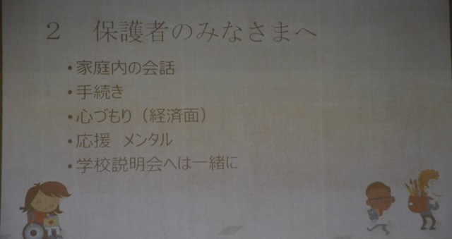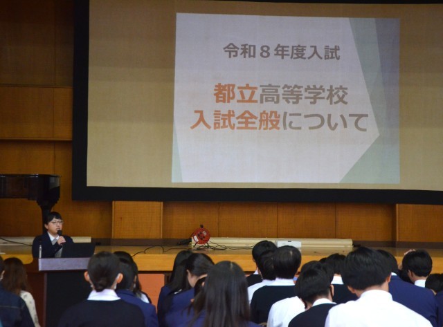 11月6日(木)の6時間目に3年生徒・保護者対象の第2回進路説明会が行われました。学校長から進路選択に向けての心がけやご家庭内での子どもへのサポートを、進路指導主任からは上級学校への入学選抜についての説明などが話されました。来週(11月12日)は定期考査が行われ、その結果で進路に関することが決まってきます。3年生はこれからの期間、気持ちを集中して日々を過ごしてほしいと思います。