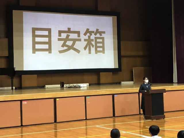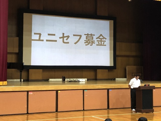 11月17日(月)に生徒会朝礼が行われました。今回はけやき祭のあとにおこなわれた「ユニセフ募金」の報告と目安箱の設置についてでした。ユニセフ募金は¥35,480円でした。関係機関に寄付としてワクチン等へのボランティアに役立てます。目安箱の具体的取り組みはこれから始まります。意欲的な自治活動はとても立派なことであると思います。