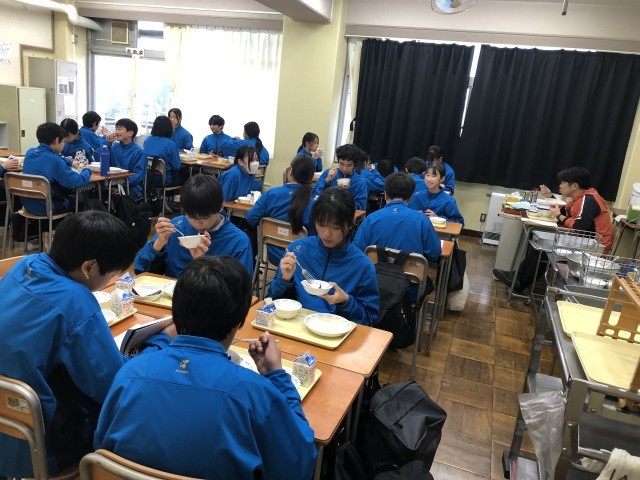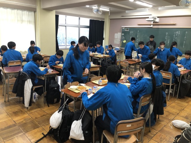 12月24日(水)は2学期の給食の最終日でした。本日はクリスマスを意識したメニュー(ガトーショコラ)でした。配膳作業はどのクラスも比較的早くて、喫食する時間が保たれています。おいしく食べて午後の活動につなげてほしいと思います。