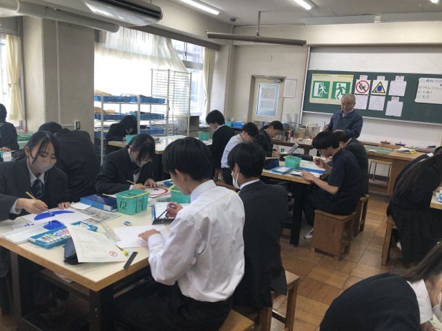 授業の様子(2年美術) 公開日 2026/02/04 更新日 2026/02/04 できごと 2年生の美術の授業の様子です。オリジナルの「ピクトグラム」の製作をしています。下準備のデザインから清書(着色)しています。通常の絵の具とは異なったポスターカラーを使用しているので、色に含みがあります。個々の生徒が完成に向けて努力していくことを期待しています。