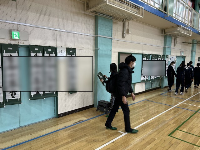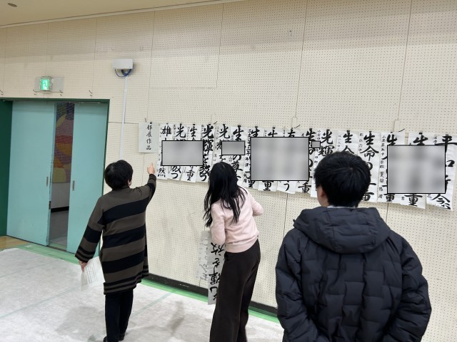 江戸川区書き初め大会 公開日 2026/02/20 更新日 2026/02/19 できごと 本校の生徒玄関に作品を展示しています。この書き初め展は区内の全中学校から作品を出し、審査員の先生(3枚目の写真)によって審査をされました。今回は書き初め展に出品した生徒(3名)全員が入賞しました。