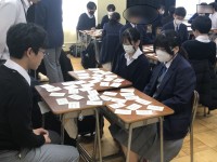 本校の生徒玄関に作品を展示しています。この書き初め展は区内の全中学校から作品を出し、審査員の先生(3枚目の写真)によって審査をされました。今回は書き初め展に出品した生徒(3名)全員が入賞しました。