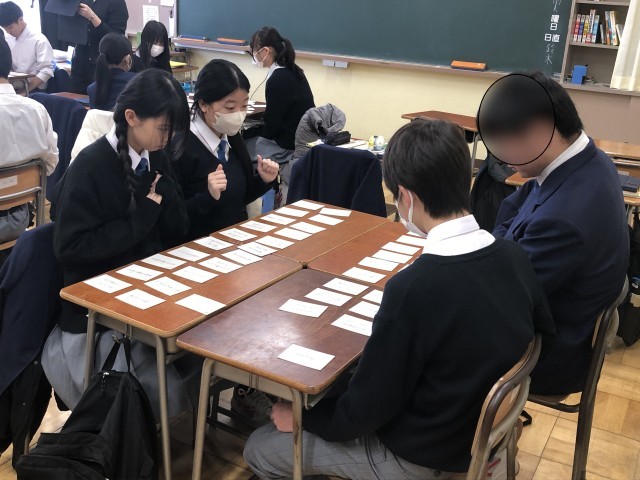 3年生の国語の授業の様子です。ことわざの学習で「ことわざかるた」を行っています。国語の授業では「語彙力」をつけていくことが学習目標になっています。ことわざを知って日常会話で活用していく人になって欲しいと思います。