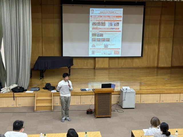 本校の特色ある授業の1つに「レインボーホール」を活用した活動があげられます。このレインボーホールは3階にあります。主に、学年集会や2クラス同時の一斉授業などで日常は活用します。また、PTAなどの大人の会合にも活用します。この施設の活用も特色ある授業の1つです。
