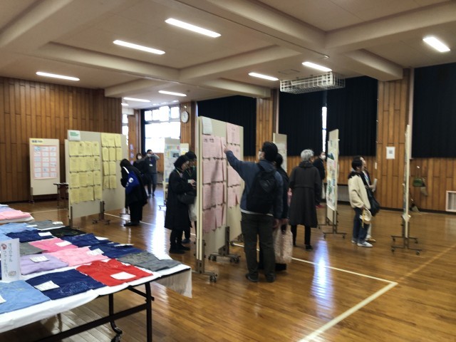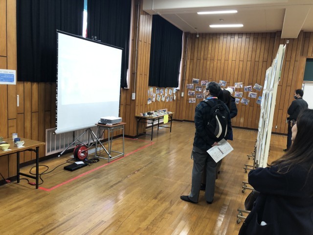 保護者の学習展示会会場での鑑賞の様子です。
