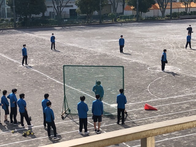 3年生の授業の様子の2回目は保体の授業の様子です。先月はソフトボールに取り組みました。これは、集団的球技というカリキュラムに則ったものでした。この授業では学年の先生も授業に参加しました。