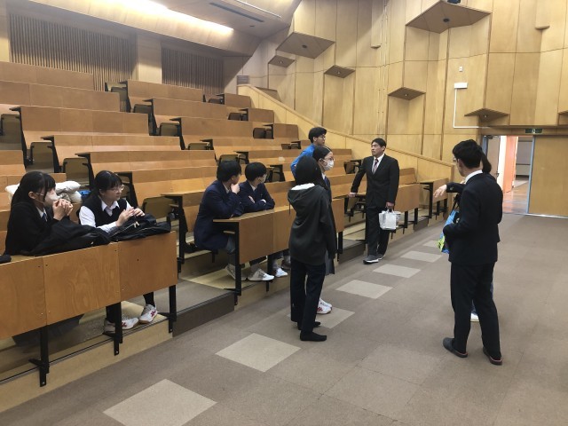 離任式のその2として、離任される先生との生徒が交流している様子です。