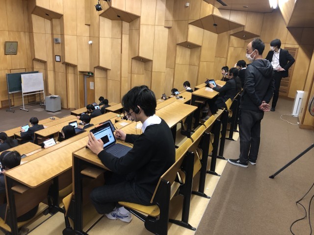 3月17日(火)に2年生は来年度の4月に行われる「全国学力調査」のプレテストを行いました。次年度は国語・数学のほかに英語が課されます。その英語の調査がコンピュータを使った調査となります。そのためのプレテストでした。内容は、過日行われたESAT-J(英語スピーキングテスト)と同じようなものでした。東京都ではいち早く英語のスピーキングテストを導入しているので、生徒にとっては慣れたものでした。