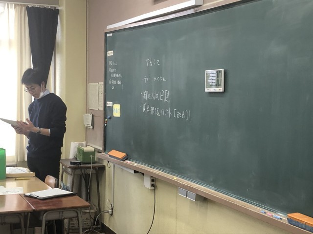 その5は2年生の授業の様子です。生徒は先月行われた都立高校の入学検査問題に取り組んでいます。また2年生の廊下の掲示版には、新聞で報道された問題を掲示していました。2年生にとっては、高校入試まで1年を切っています。むかしから、「受験準備は早く」ということを耳にします。春休みから早速準備をしていくとよいと思いますが……。